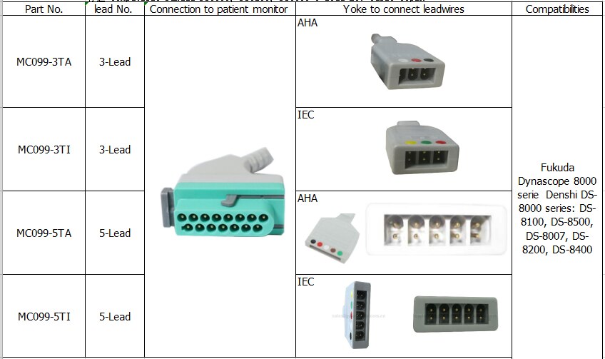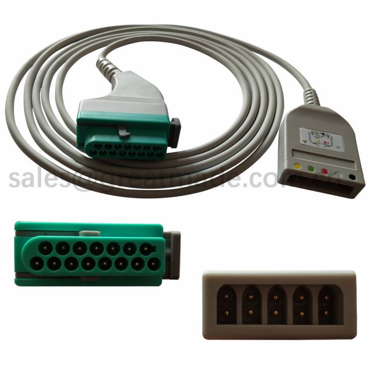 Kompatibelt fukuda DS8100, DS8200, DS8500 3-leder EKG-kabel 15pin