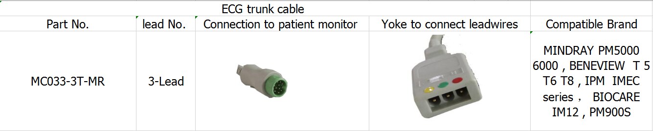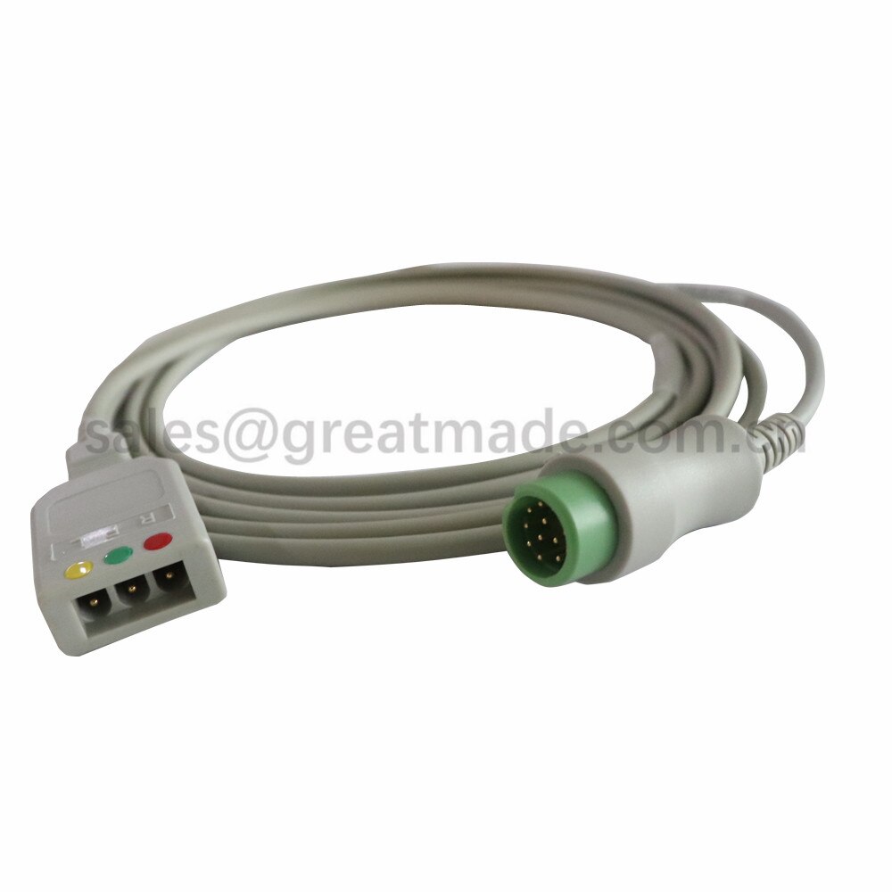 EKG-kabel 3-leder bagagerumskabel til BENEVIEW T5 T6 T8, BIOCARE IM12, PM900S