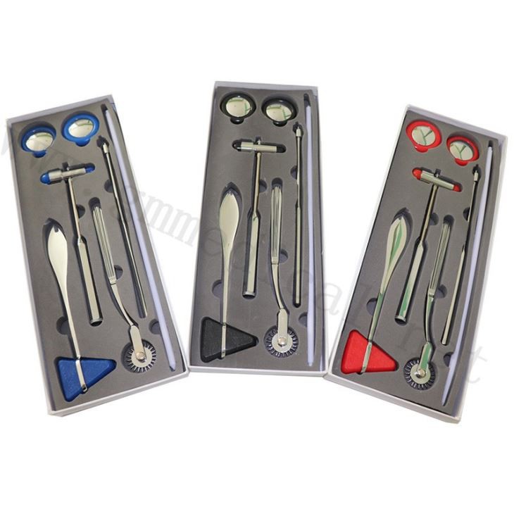 Multifunktionel percussor Diagnostic Reflex Slaghammer Sæt Medicinsk neurologisk massage Hammer Kit Sundhedspleje Reflekshammer sæt indeholder 5 forskellige reflekshammer: Triangle Hammer, Long Metal Rod Hammer, Long Plastic Rod Hammer, T-form Hammer, Geer Wheel Hammer.