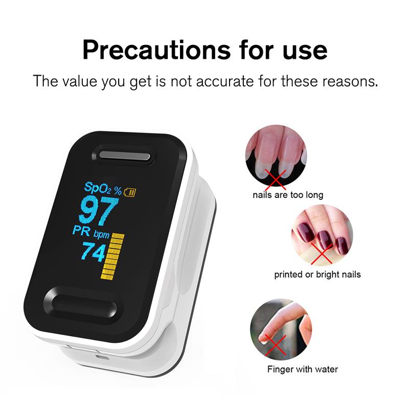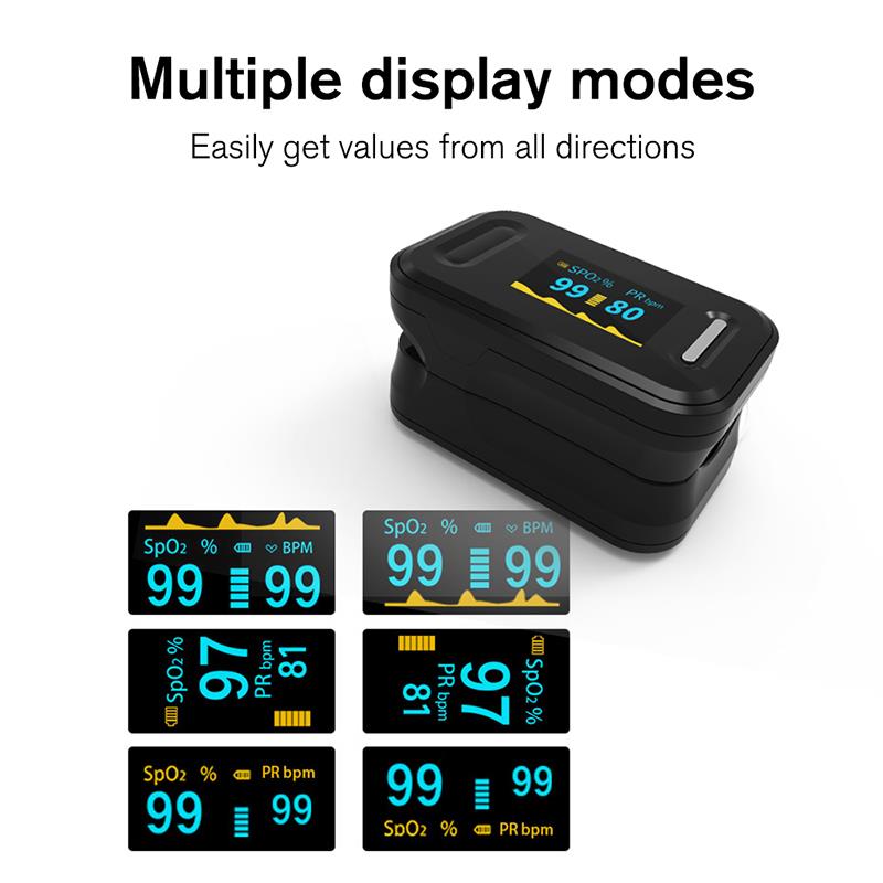 Finger Pulse Oximeter er en overkommelig og nøjagtig måde at kontrollere pulsfrekvensen og iltmætning i blodet på. Det viser også Plethysmograph-bølgen, der garanterer nøjagtigheden. Selvjusterende fingerklemme plus simpelt design med en knap gør det nemt at betjene. Leveres med en kuffert og nakke / håndledsnor. Praktisk at sygeplejerske og læge hænger på nakken. Lille bærbar størrelse gør det nemt at håndtere og medbringe. Velegnet til daglig brug. Mål dit helbred når som helst.
